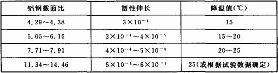 注:對(duì)大鋁鋼截面比的鋼芯鋁絞線(xiàn)或鋼芯鋁合金絞線(xiàn)應(yīng)由制造廠(chǎng)家提供塑性伸長(zhǎng)值或降溫值。