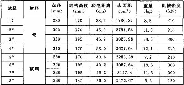 表B.0.1-2 瓷和玻璃絕緣子試品的尺寸