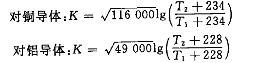 必須根據(jù)保護(hù)導(dǎo)體的材料,初始溫度和最終溫度值,按下列公式計(jì)算K值。