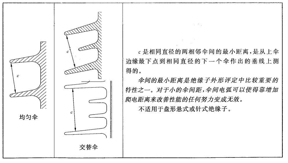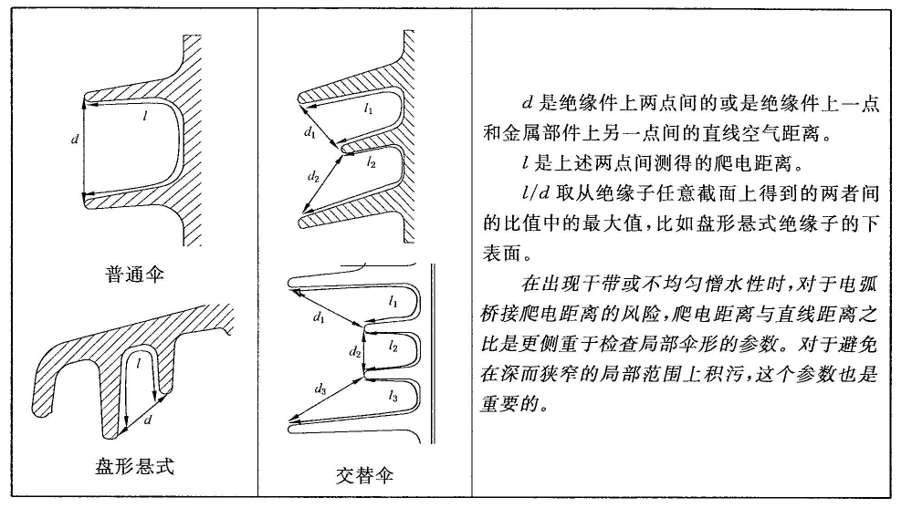 注2:絕緣長(zhǎng)度指的是帶電端金屬附件和接地端金屬附件間的最短距離,忽略去任何均壓環(huán)的存在,但包括沿絕緣子長(zhǎng)度的中間金屬部件。