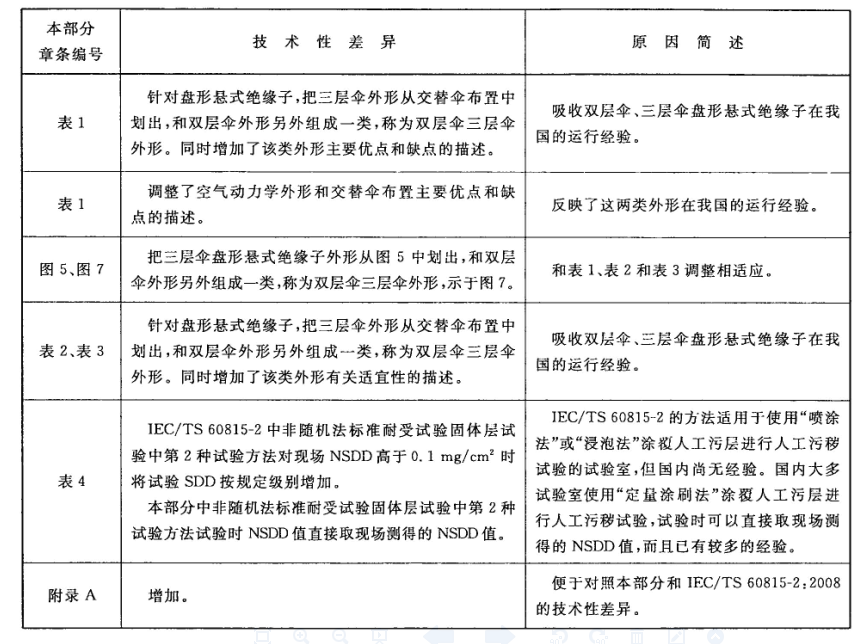 本部分與IEC/TS 60815-2:2008的技術(shù)差異及其原因見表A.1。