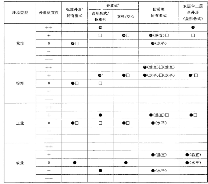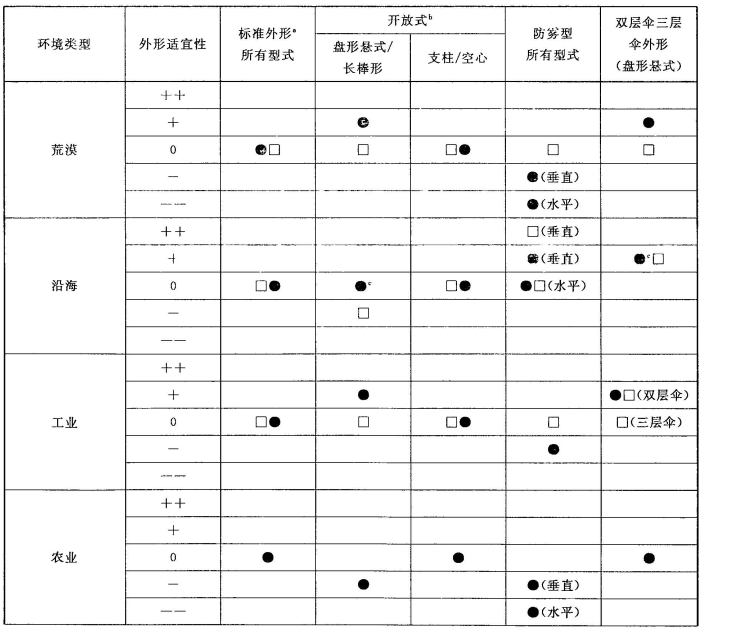 污穢常常不是用來(lái)選擇絕緣子外形的唯一參數(shù)。絕緣子材料、設(shè)計(jì)、制造工藝或應(yīng)用可能會(huì)排除某些外形。因此,對(duì)絕緣子――污穢類型組合的最佳外形可能不會(huì)使用。因此不能排除某一不太適宜的外形的選擇或使用。
