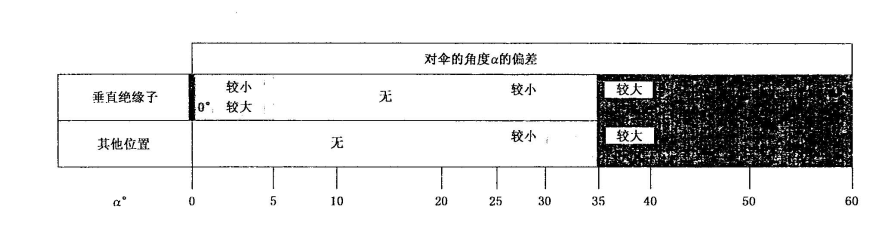 下面表明了外形參數(shù)的正常(白色的)范圍、可能會(huì)降低性能(較小偏差)的灰色范圍和可能會(huì)對(duì)污穢條件下性能有嚴(yán)重負(fù)效應(yīng)(較大偏差)的黑色范圍。每一參數(shù)都應(yīng)按下而計(jì)算和核查,允許一個(gè)參數(shù)偏移到灰色的范圍,即具有較小偏差。在較小偏差情況下推薦從圖1選取RUSCD時(shí)應(yīng)朝向SPS等級(jí)的上端或者是甚至選用下一個(gè)較高的等級(jí),除非這種變化可能會(huì)進(jìn)一步加劇這個(gè)偏差。如果有多于一個(gè)參數(shù)是在灰色范圍或者有任一參數(shù)是在黑色范圍內(nèi)則這應(yīng)考慮作為一個(gè)較大偏差,并建議進(jìn)行下列工作之一: