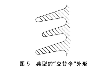 典型的針式絕緣子傘外形示于圖6。通常,針式絕緣子外形可以歸為防霧型,因此下而不再單獨(dú)涉及它。