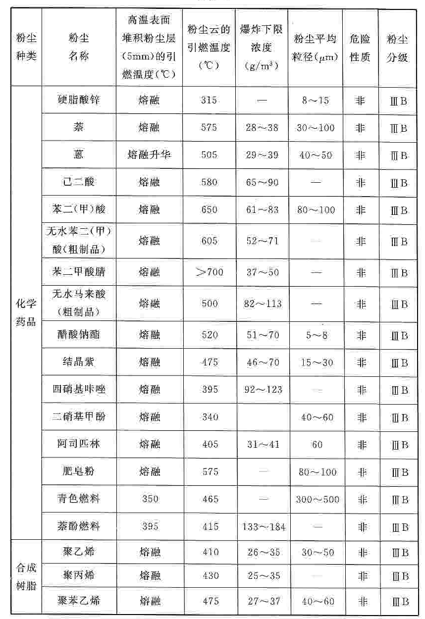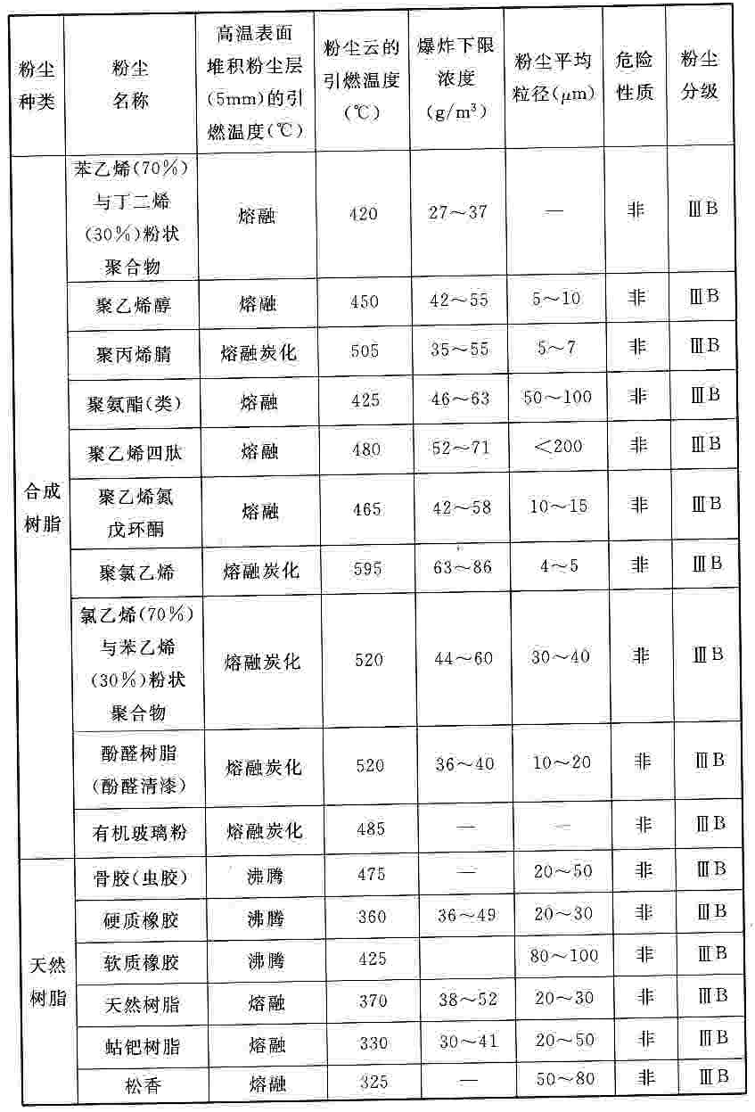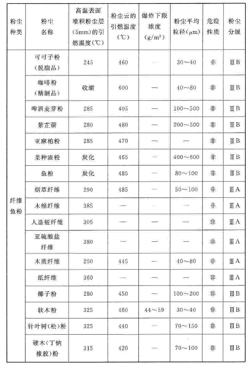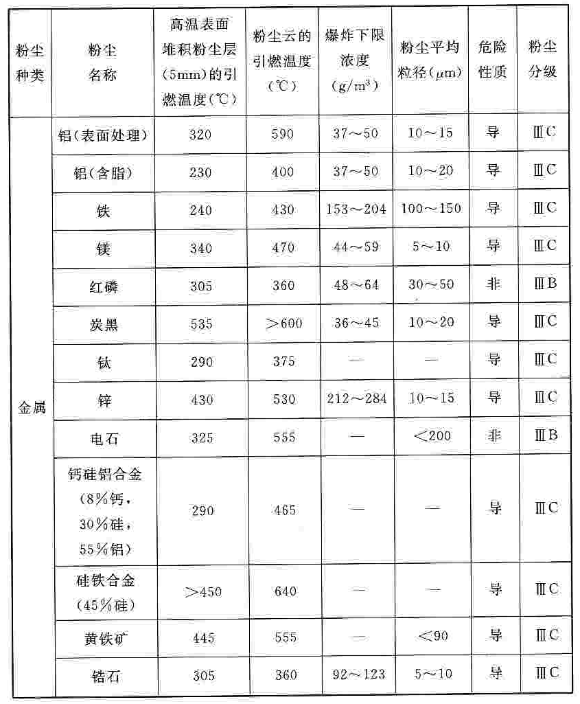 注:危險(xiǎn)性質(zhì)欄中,用“導(dǎo)”表示導(dǎo)電性粉塵,用“非”表示非導(dǎo)電性粉塵。