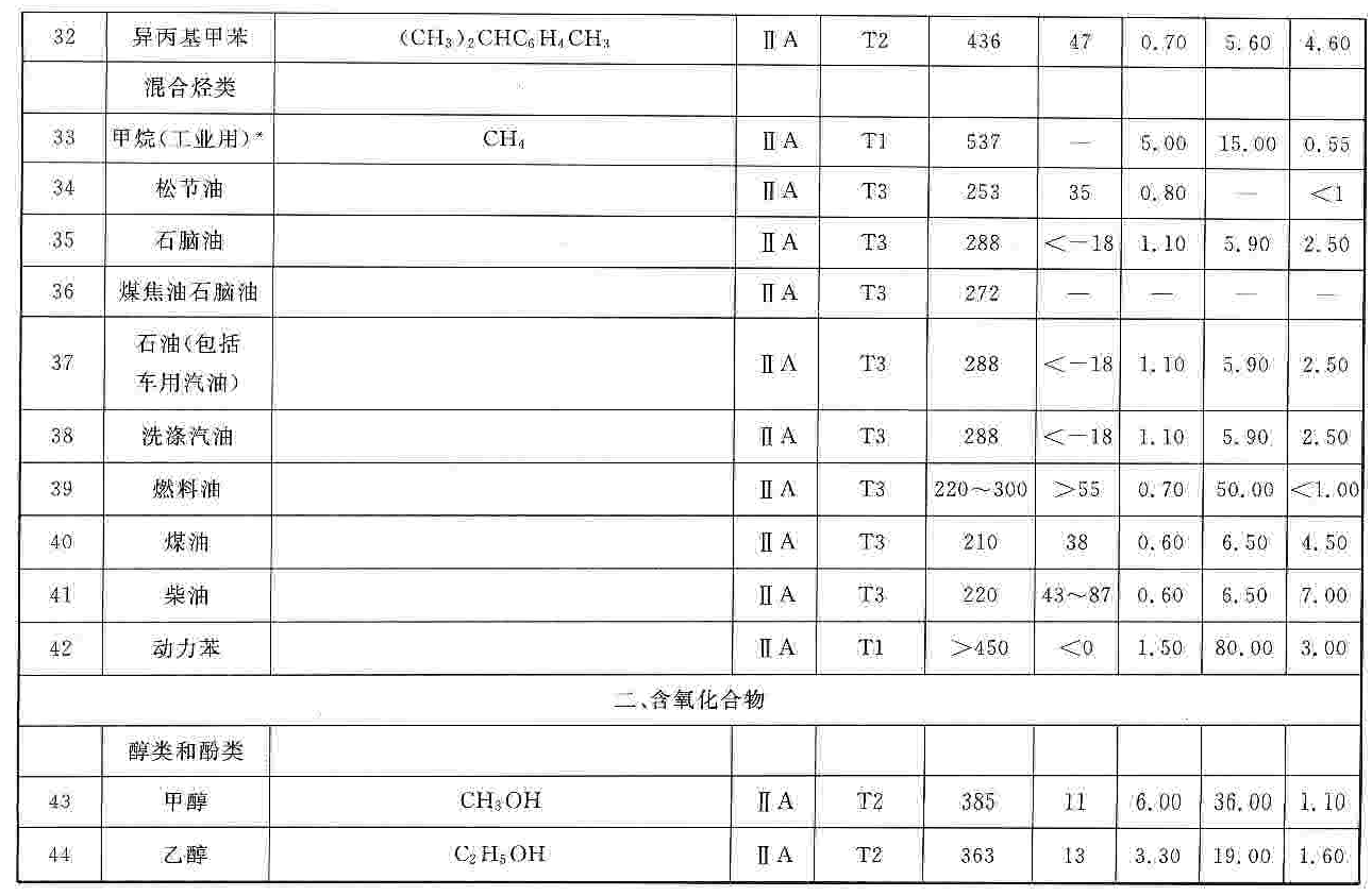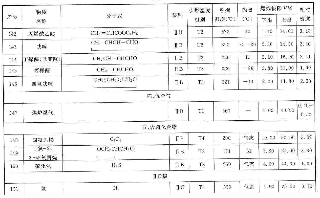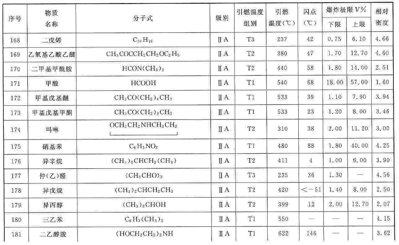 表C 可燃性氣體或蒸氣爆炸性混合物分級(jí)、分組