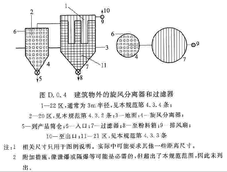D.0.4 建筑物外的旋風(fēng)分離器和過(guò)濾器(圖D.0.4):