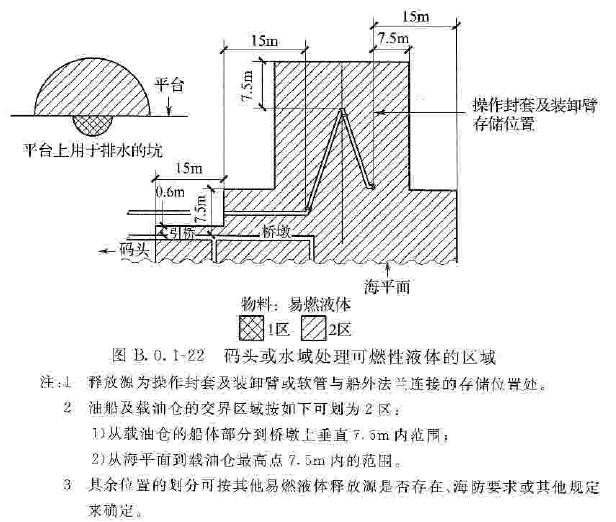 2)從水面至裝油艙最高點(diǎn)算起7.5m的范圍可劃為2區(qū)。