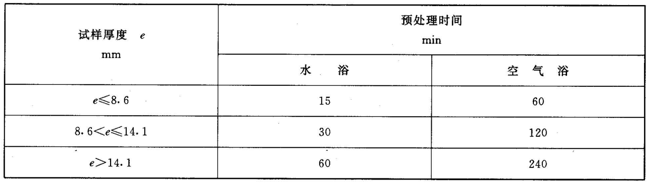將試樣放在符合規(guī)定測試溫度Tc的水浴或空氣浴中對試樣進行預(yù)處理,時間按表2規(guī)定。在仲裁檢驗時,應(yīng)使用水浴。