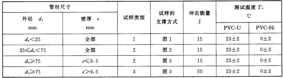 表4 未增塑聚氯乙烯和高抗沖聚氯乙烯管材試驗條件