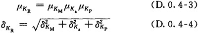 2 單一材料的結(jié)構(gòu)或結(jié)構(gòu)構(gòu)件綜合抗力不定性附加變量KR的平均值及其變異系數(shù)可按下列公式計(jì)算: