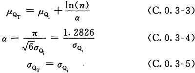 當(dāng)Fτ(Qi)符合極值Ⅰ型分布時(shí),F(xiàn)T(QT)也符合極值Ⅰ型分布,其統(tǒng)計(jì)參數(shù)應(yīng)按下列公式計(jì)算: