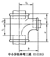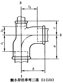 A.11 側小異徑單彎三通型式尺寸應符合圖A.11、表A.11的規(guī)定。