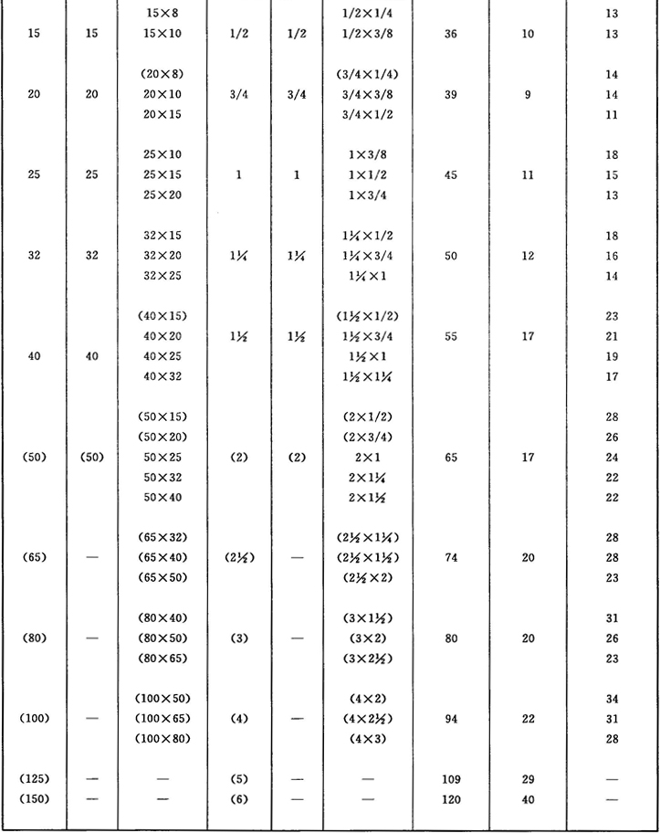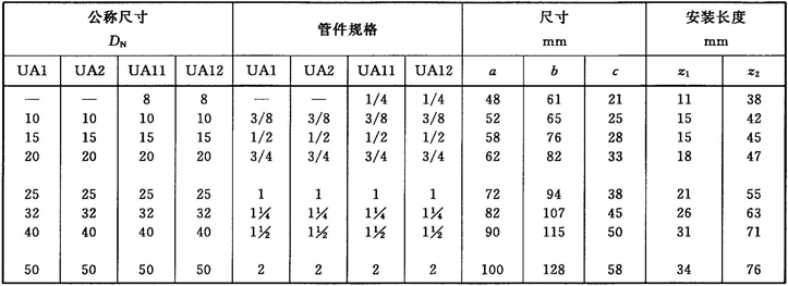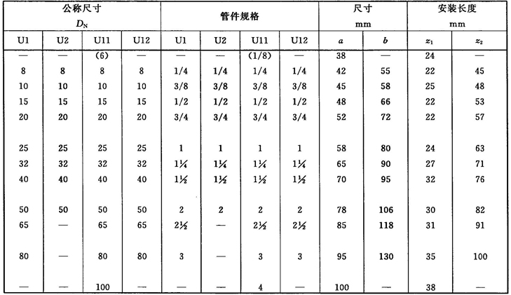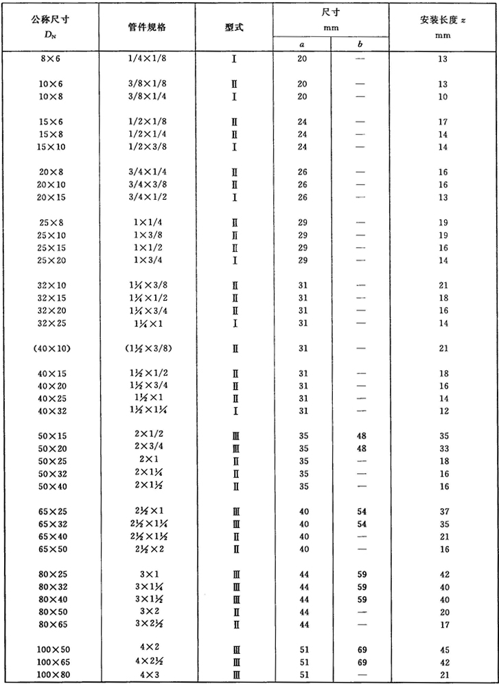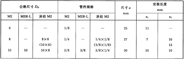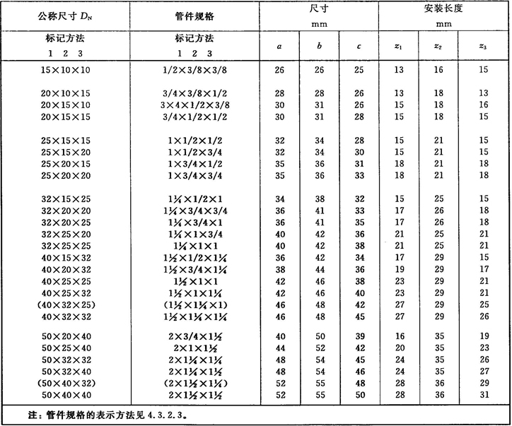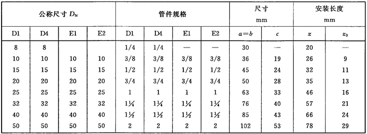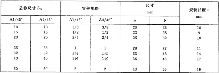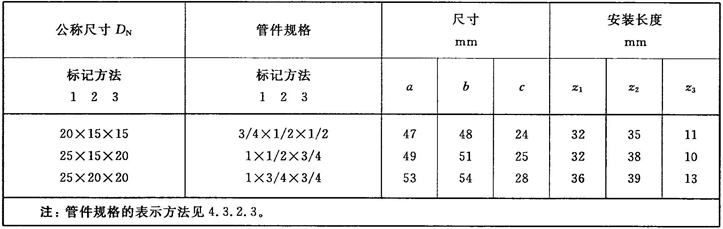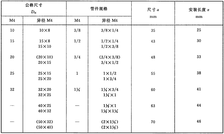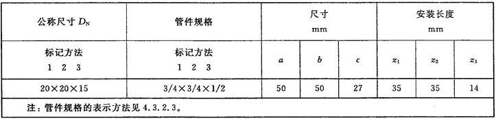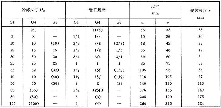 注:管件規(guī)格(即螺紋尺寸代號)與公稱尺寸(DN)之間的關系,見表1。