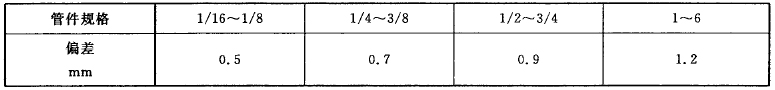螺紋軸線應與管件端面垂直,垂直度偏差不得大于表7的規(guī)定。