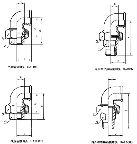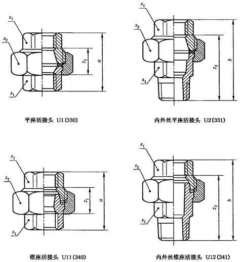 注:活接頭(無論是否有適合于閥座設計的墊圈)應作為一個完整組件來使用,因為活接頭的部件可以由不同的制造商來加工,也可以不同類型活接頭的部件由同一個制造商來做,這些部件沒有必要(要求)具有互換性。