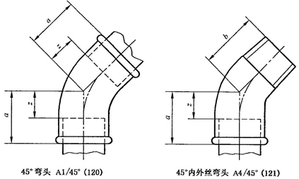 A.3 45°彎頭型式尺寸應符合圖A.3、表A.3的規(guī)定。