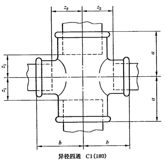 A.8 異徑四通型式尺寸應符合圖A.8、表A.8的規(guī)定。