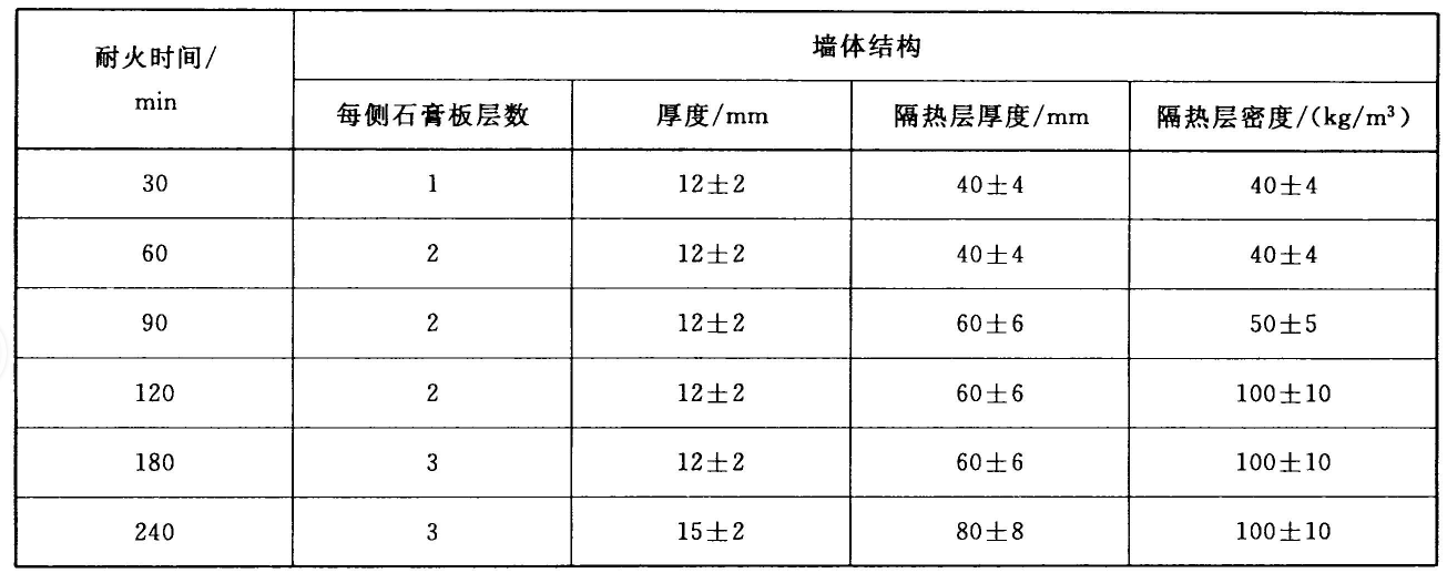 表4 標(biāo)準(zhǔn)柔性墻體結(jié)構(gòu)(石膏板墻)