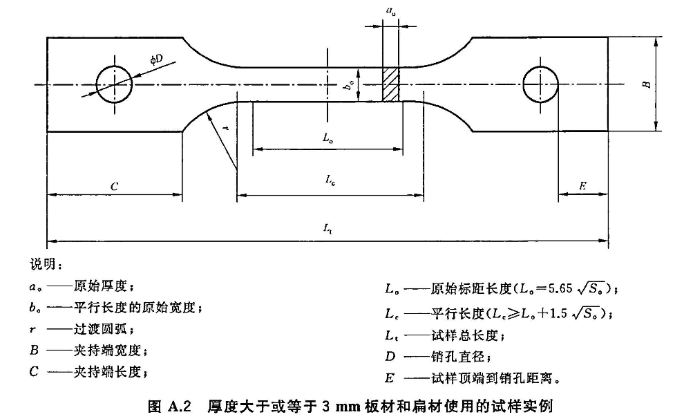 所有試樣尺寸應(yīng)符合GB/T 228.1―2010附錄B~附錄E規(guī)定,下述條款給出了部分試樣詳細尺寸信息的實例。