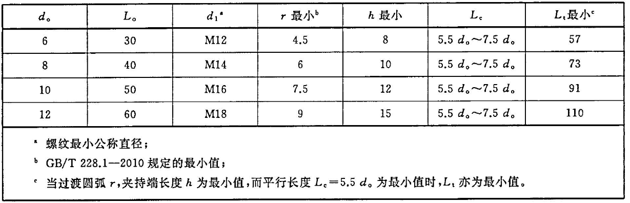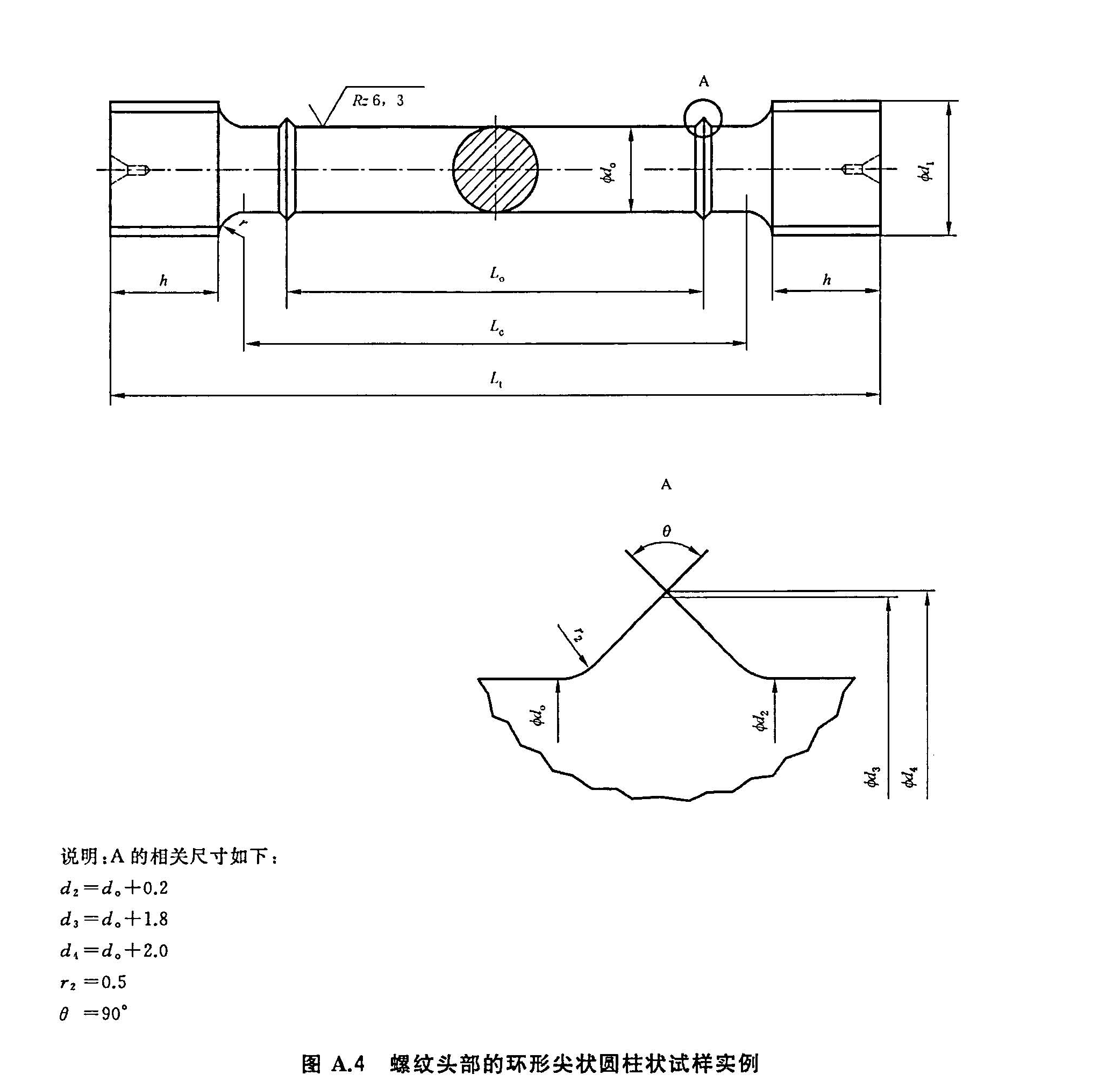 試樣頭部通常采用螺紋夾持(見圖A.3和表A.3)。