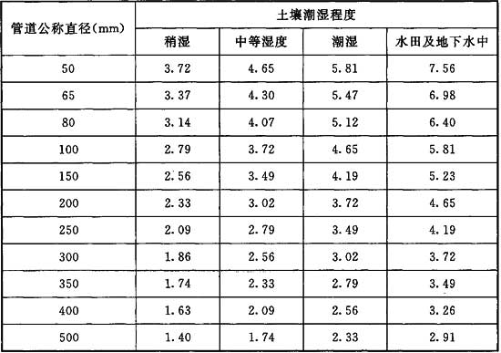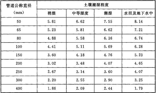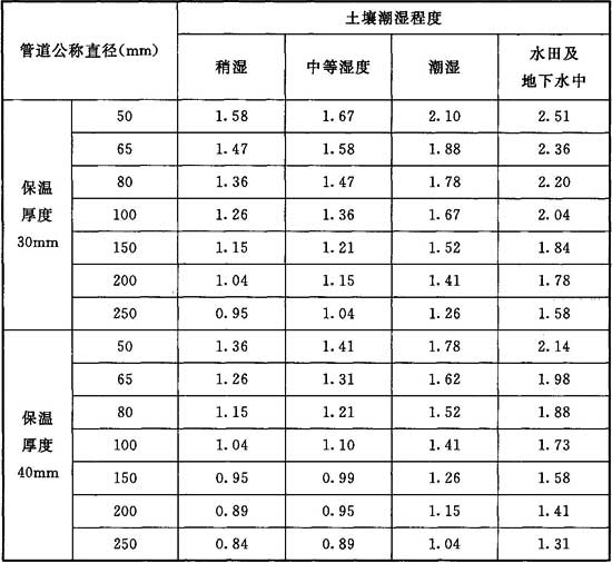 表E 埋地硬質(zhì)聚氨酯泡沫塑料保溫集輸油管道總傳熱系數(shù)K[W/(m2·℃)]