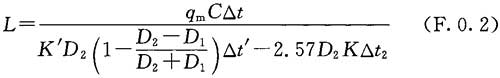 F.0.2 當(dāng)集油管長度小于原油升溫所需要的熱伴隨長度時(shí),在井口應(yīng)設(shè)換熱器。集油管路伴熱輸送保證升溫的熱伴隨長度,可按下式計(jì)算(雙管管組):