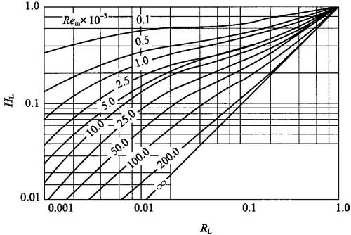 HL——截面含液率,即考慮氣液相滑脫時(shí)的含液率,可根據(jù)RL和Rem查圖C.0.1-2確定。