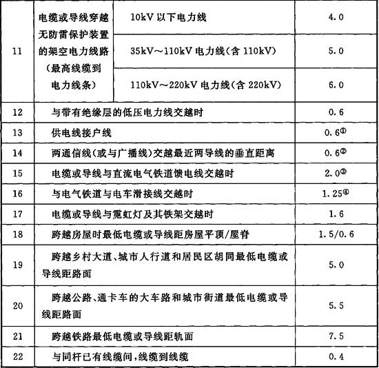 注:①供電線為被覆線時(shí),光(電)纜也可以在供電線上方交越。
