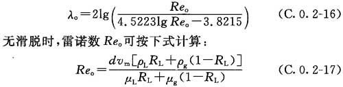 λm——混輸摩阻系數(shù),可根據(jù)無滑脫水力摩阻系數(shù)λo、含液率HL、無滑脫含液率RL,經(jīng)計(jì)算確定,見本條第4款;