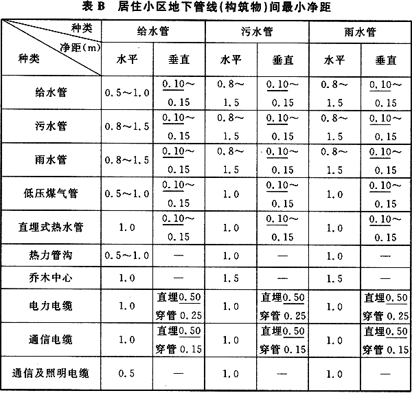 附錄B 居住小區(qū)地下管線(構(gòu)筑物)間最小凈距