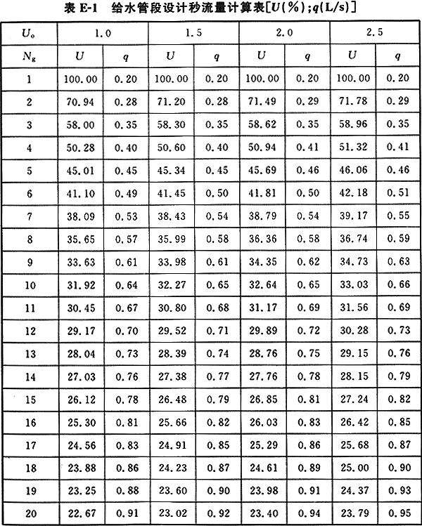 附錄C 給水管段衛(wèi)生器具給水當量同時出流概率計算式ac系數(shù)取值表