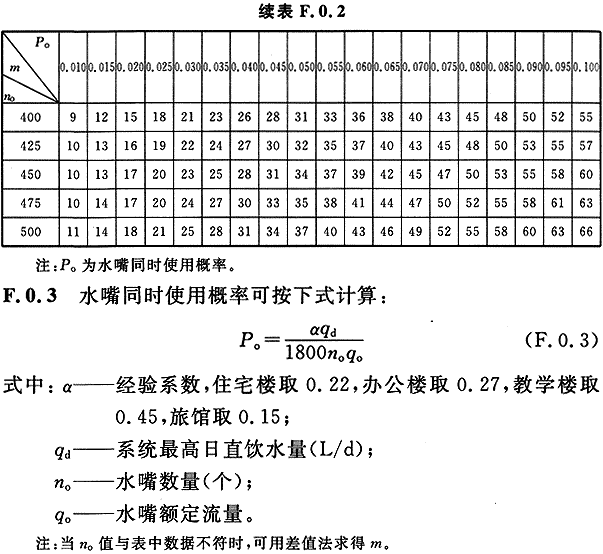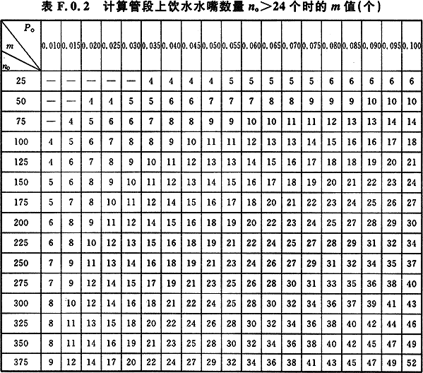 F.0.2 當計算管段上飲水水嘴數(shù)量no>24個時,同時使用數(shù)量m按表F.0.2取值。