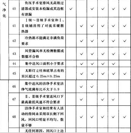 表B.0.2 潔凈手術(shù)部工程驗收評價標(biāo)準(zhǔn)