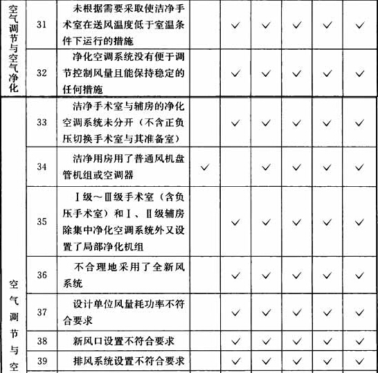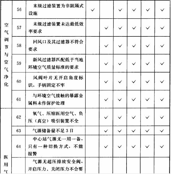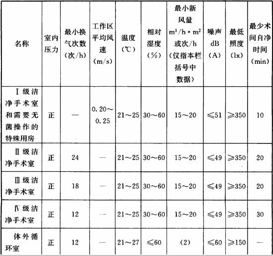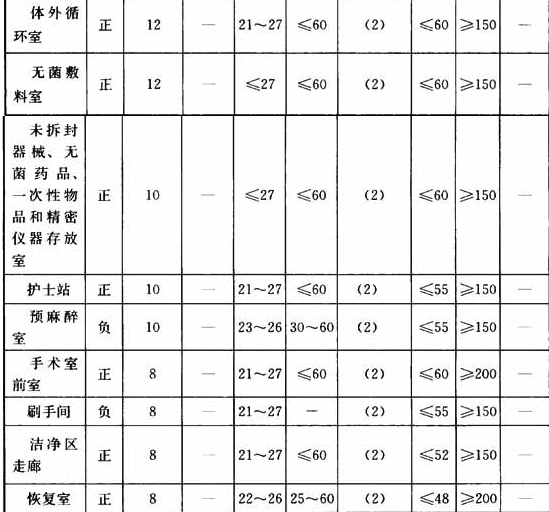 注:1 負壓手術(shù)室室內(nèi)壓力一欄應(yīng)為“負”。
