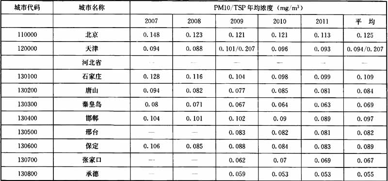 附錄A 地級市以上城市可吸入顆粒物/總懸浮顆粒物年平均濃度