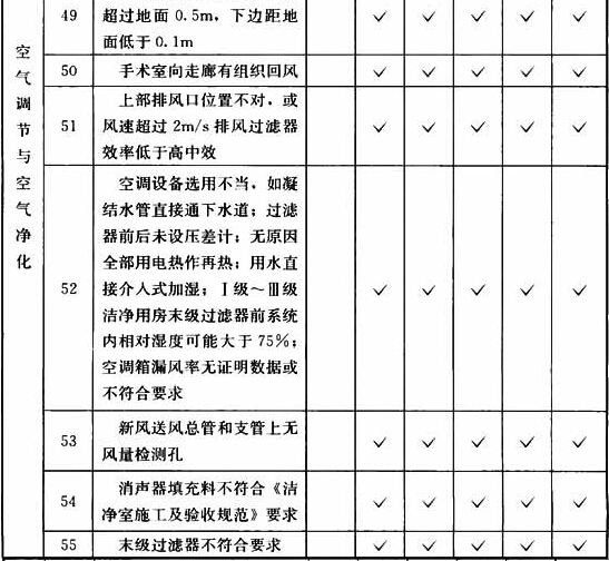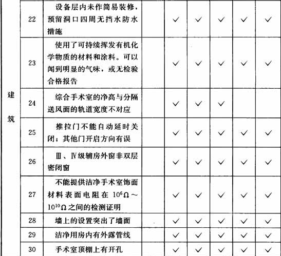 表B.0.3 潔凈手術(shù)部工程項目檢查表