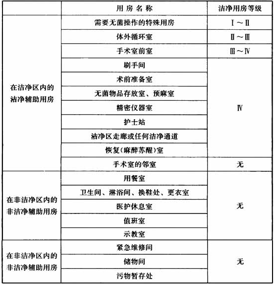 3.0.2 潔凈手術(shù)室的用房分級標(biāo)準(zhǔn)應(yīng)符合表3.0.2-1的規(guī)定,潔凈輔助用房分級標(biāo)準(zhǔn)應(yīng)符合表3.0.2-2的規(guī)定。