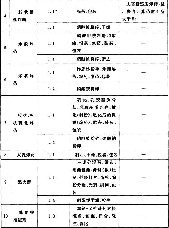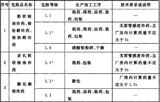 注:1 無雷管感度的炸藥、硝銨膨化工序的危險等級為1.1*。