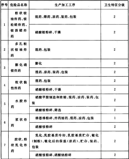 表A 危險品生產工序的衛(wèi)生特征分級表
