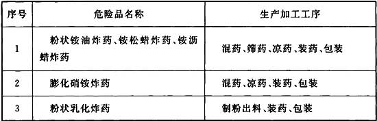 3.0.3 火炸藥生產廠房的危險等級應按廠房內危險品生產工序中最高危險等級確定。