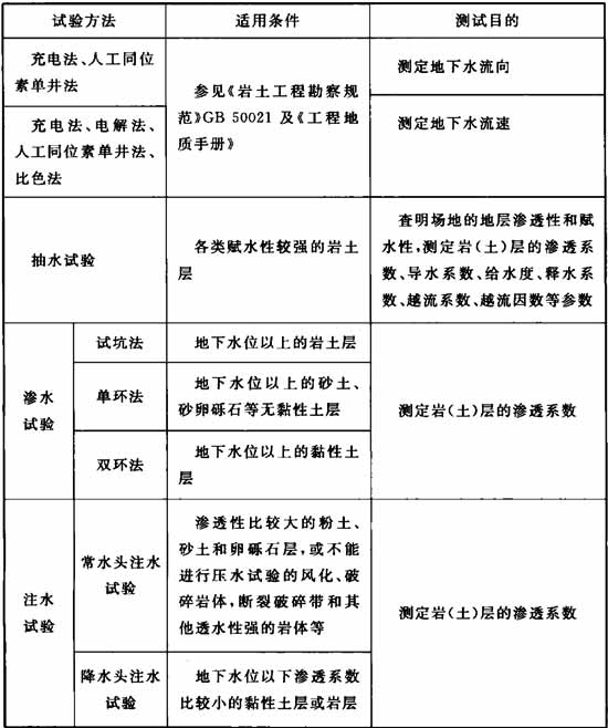 附錄D 水文地質(zhì)試驗(yàn)適用條件及測試目的