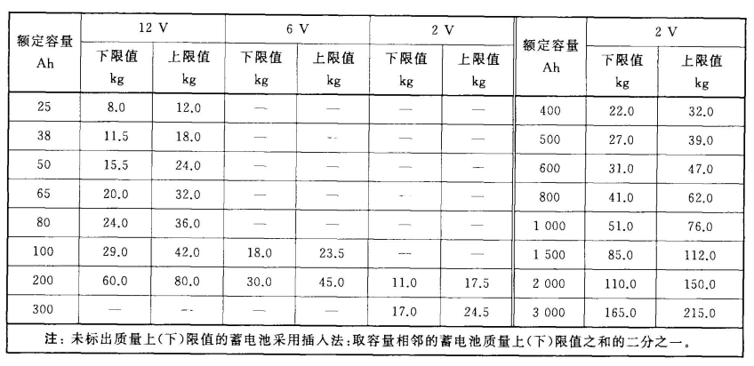 蓄電池質(zhì)量上限值、下限值