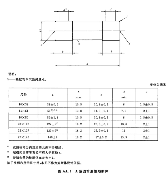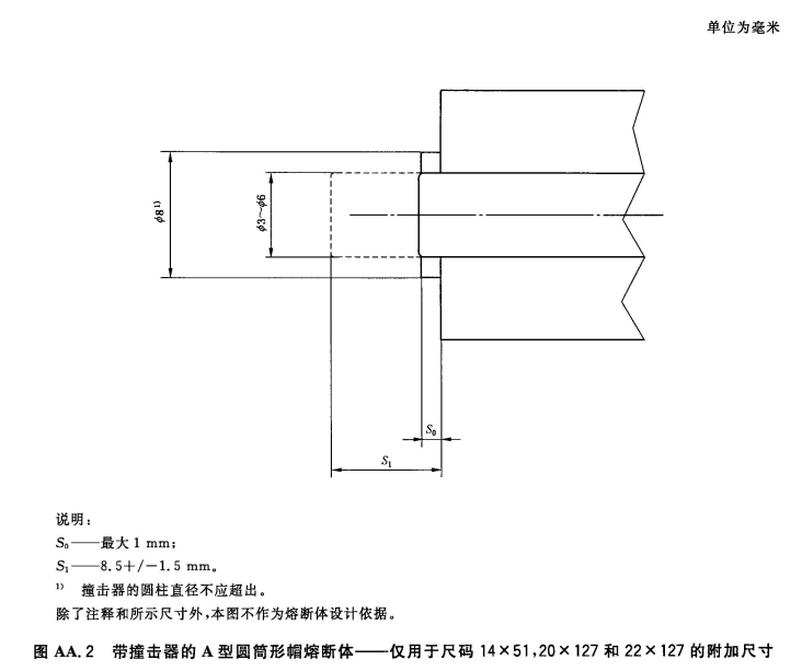 ——A型圓筒形帽熔斷體系統(tǒng)——法國(guó)(圖AA.1和圖AA.2);