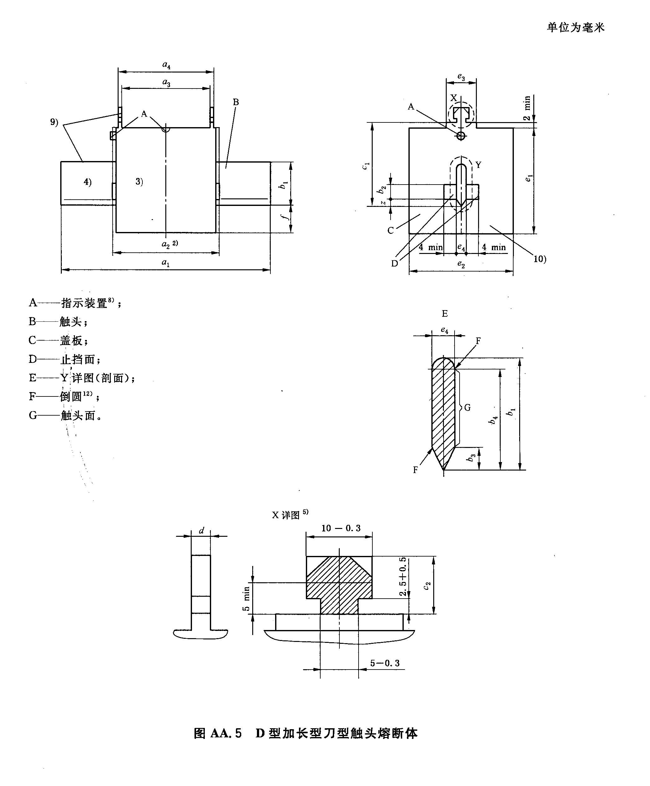 ——D型加長(zhǎng)型刀型觸頭熔斷體系統(tǒng)——DIN(圖AA.5)。