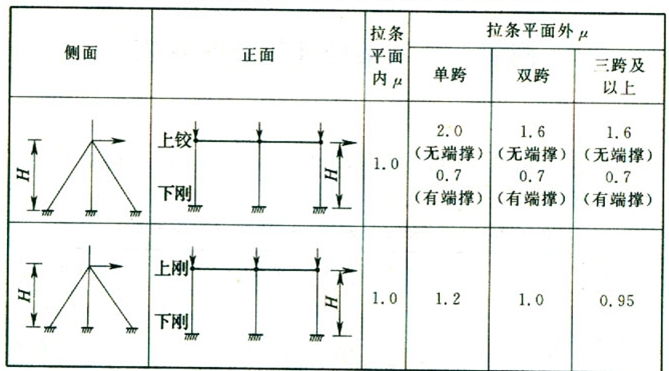C.0.2 打拉線(條)柱平面內(nèi)、外壓桿的計(jì)算長度系數(shù),應(yīng)按表C.0.2的規(guī)定取值。