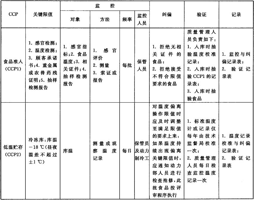 D.5 HACCP計劃表及示例參見表D.4。
