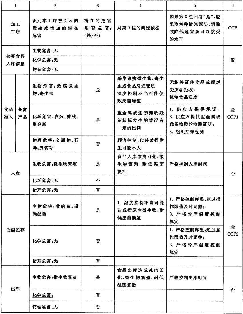 附錄D 食品冷庫HACCP計劃模式表及HACCP小組成員職責(zé)表(以冷凍畜禽肉食品為例)