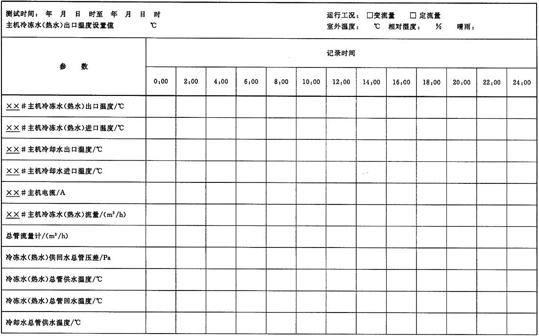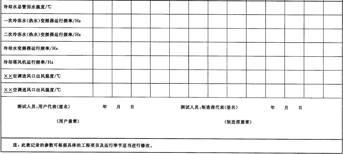 表A.5 中央空調(diào)系統(tǒng)節(jié)能率測試運行參數(shù)記錄表