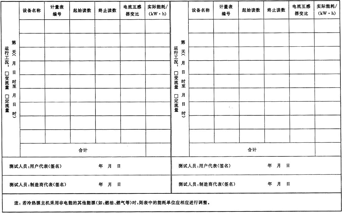 a) 測試說明。在進行節(jié)能率測試前,用戶和制造商雙方人員應(yīng)對節(jié)能測試過程(如測試時間安排、投入運行的空調(diào)設(shè)備等)及相關(guān)事宜進行協(xié)商,并以書面形式記錄歸檔保存。